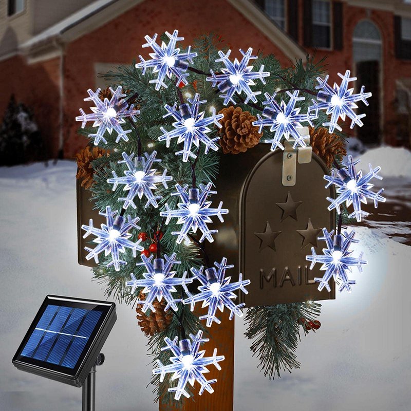 Upgraded 100 LED solar snowflake lights for patio, Window, mantel, mailbox, cemetery, deck, fence, backyard, Wreath, Christmas tree Decor..