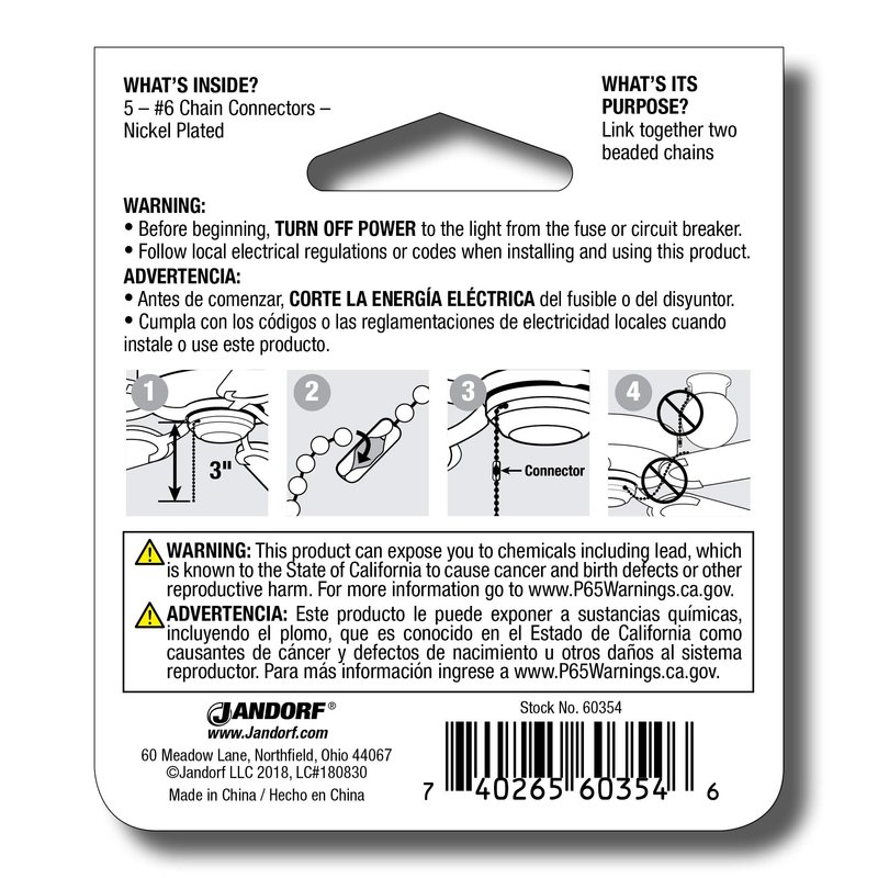 Jandorf 60354 Chain Connector, 6, Nickel Plated (Pack of 5)