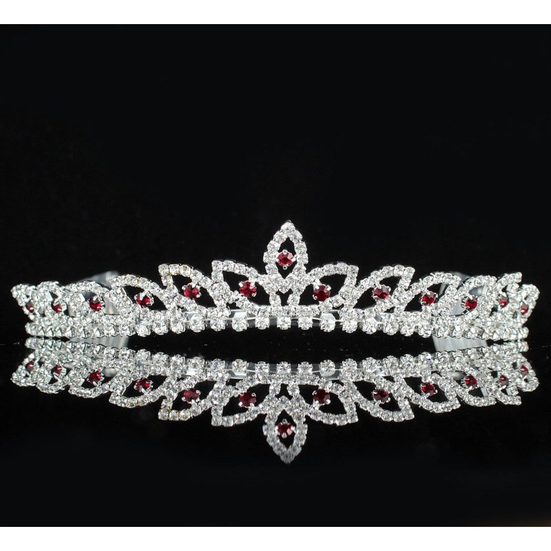 - You are looking at a beautiful princess tiara crown with hair combs. Sparkling Clear and Red Genuine Austrian rhinestones are set in a beautiful silver-plated setting. All rhinestones sparkle a lot and are prong set by hands! Side comes are for for extra security. This piece is perfect for wedding, prom or any special occasions. Thanks for looking!