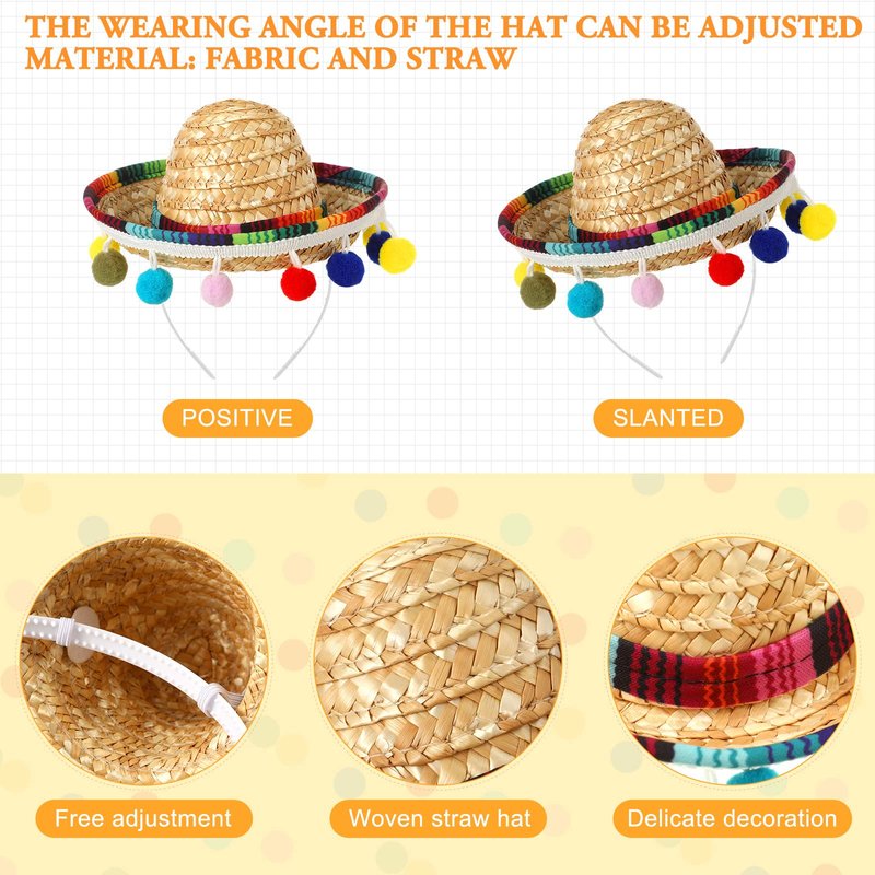 - Classic Mexican Party Hats: these 6 sombrero headbands are of different styles, with different textures and Mexican styles, embellished colorful ball shape tassels and classic patterns on the brim of the hat, pretty and charming, in line with most people's taste