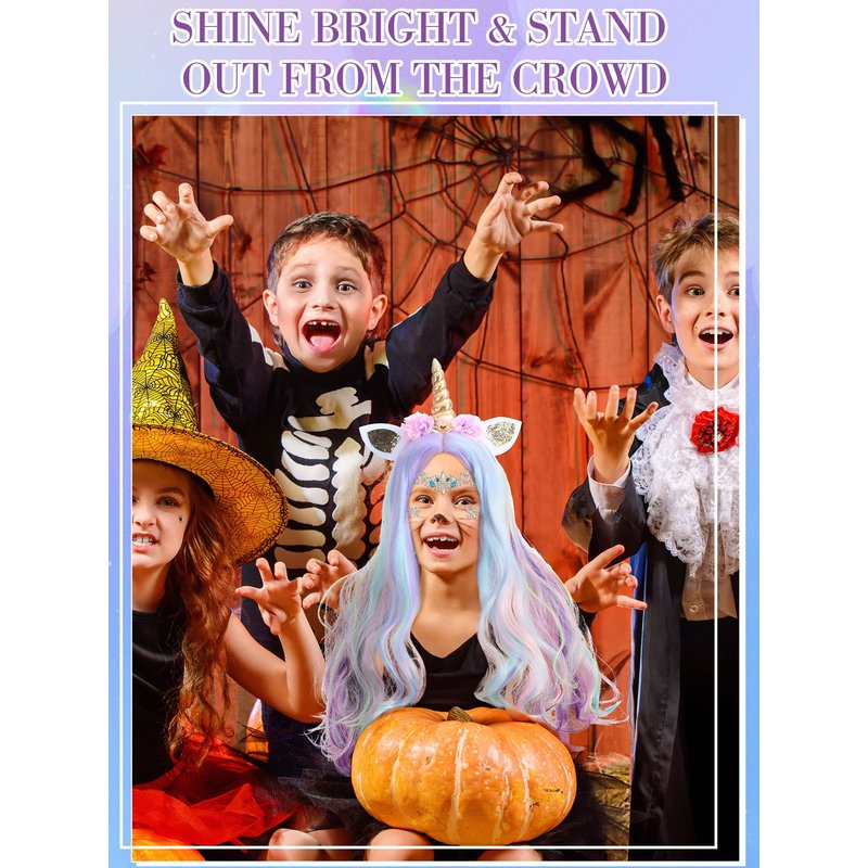 - Halloween Costume Combination for the Party: the package includes 1 piece of rainbow hair wig, 1 piece of unicorn headband, 1 set of mermaid face jewels in 6 styles, with bright and vibrant colors, making you stand out in crowds and parties