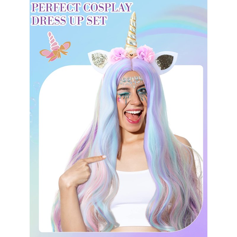 - Complete and Festival Suit: these party wigs, unicorn headband and face stickers set is applicable for Halloween, music festivals, cosplay, theme parties, photo props, dances, weddings and other occasions to show your style and taste
