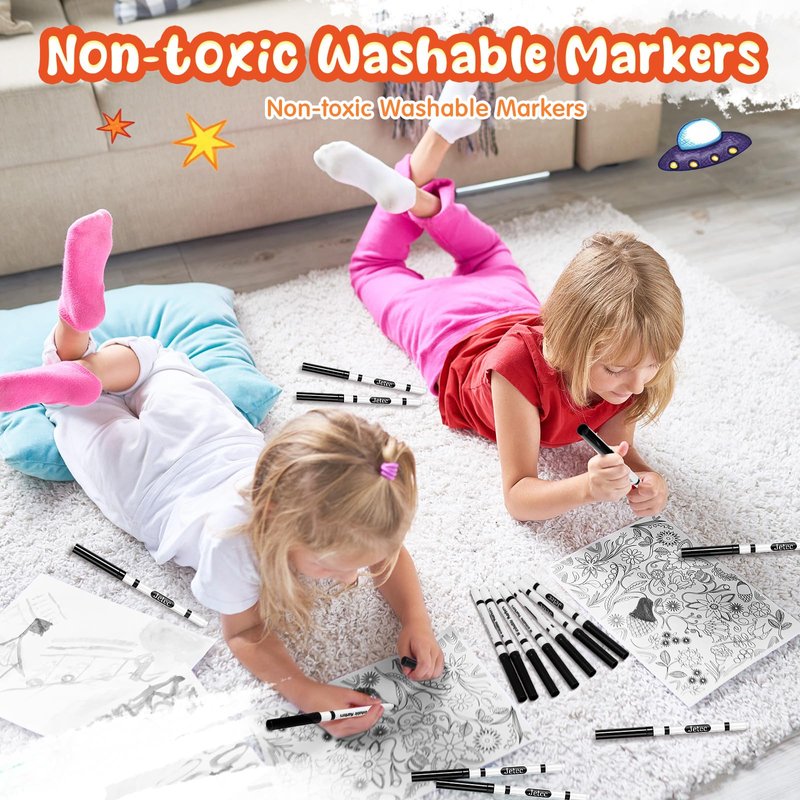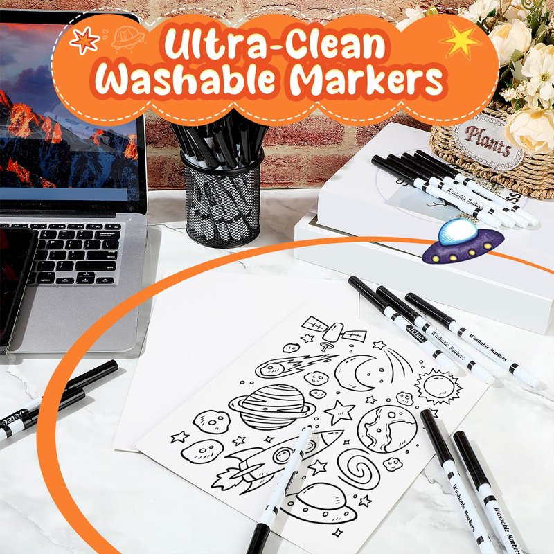 - Washable Markers: the ink of these coloring washable markers for kids can be easily washed off with soap and water from hands, skin, clothes, carpets, blackboards, tile walls, or most fabrics, so you don't have to worry about getting dirty
