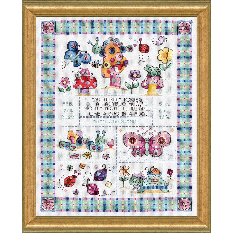 Janlynn 14 Count Bug in a Rug Birth Record Counted Cross Stitch Kit, 9-3/4-Inch by 12-3/4-Inch White