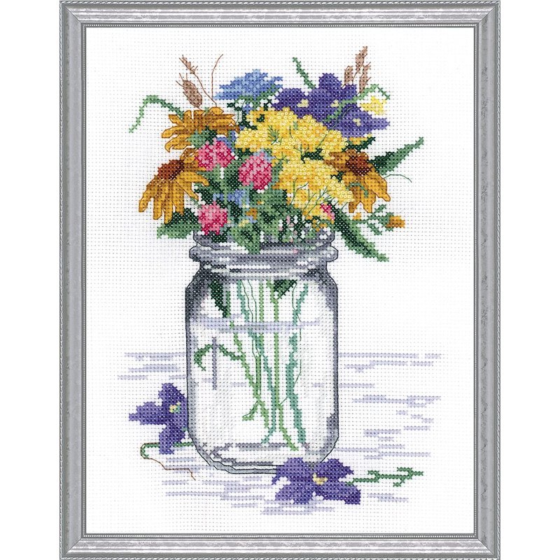 Janlynn Wildflower Jar Counted Cross Stitch Kit, White, Yellow, Blue