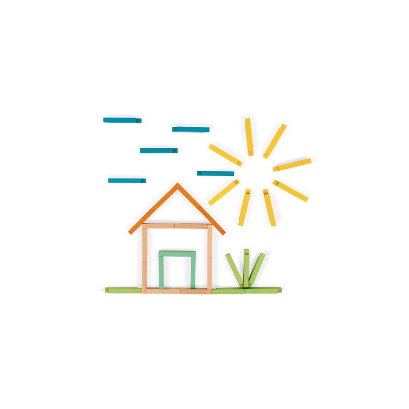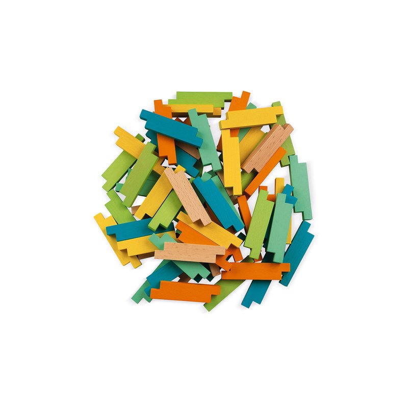Janod 60 Piece Unique Wooden Building Kit with Notched Blocks - Ages 4+ - J08300