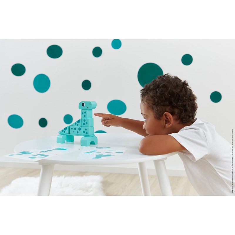 - Develops Dexterity and Motor Skills: This set teaches motor skills and cause and effect. Stack the blocks, watch them tumble, then build again. Includes 3 dinosaur base boards and 3 model cards.