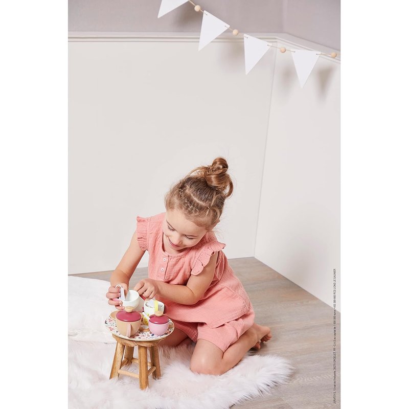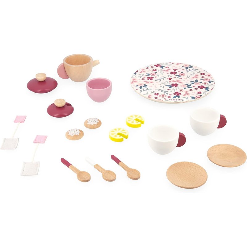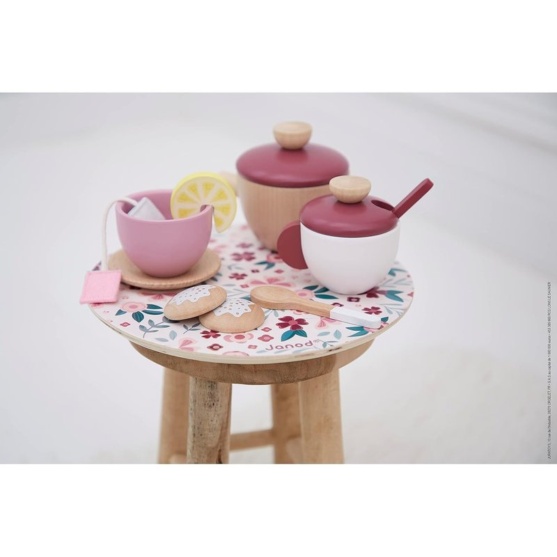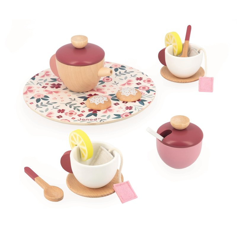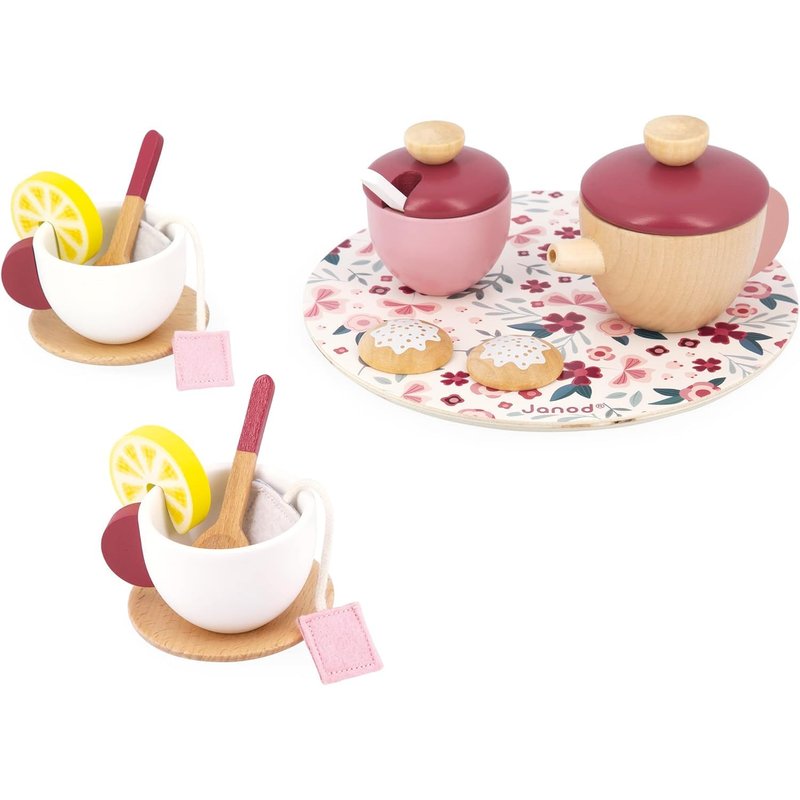 Janod Twist My First Tea Set - 16 Piece Wood and Felt Beginner Play Food Set - Includes Everything for Teatime - Pretend Play Set - Ages 2 - 5 Years - J06631