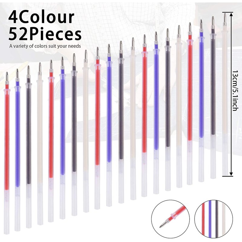 - Adequate Quantity: You will get 4 heat erasable pens and 28 refills, which can be used for quite a long time; there are 4 different color refills (black, white, red, blue), which can meet your different needs