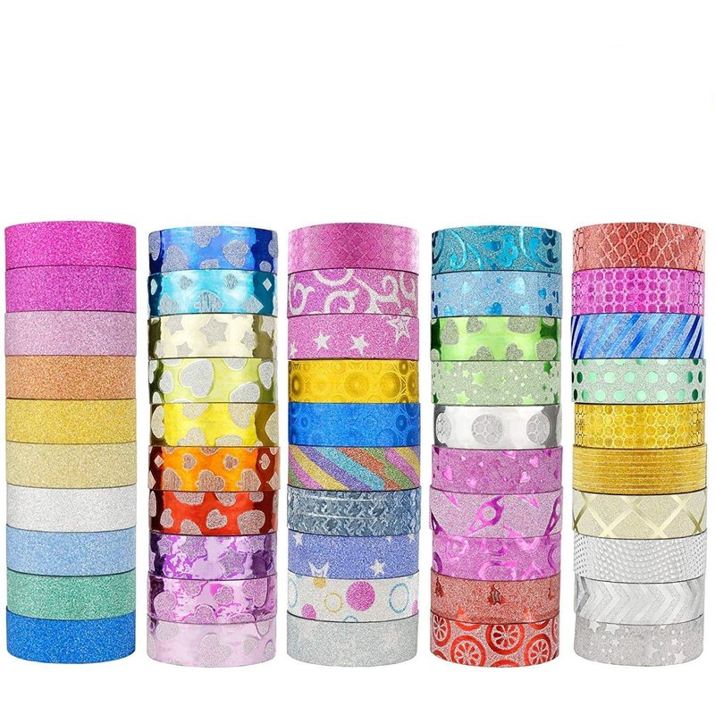JANYUN 50 Rolls Glitter Washi Masking Tape Set,Great for Bullet Journal DIY Aesthetic Decor Scrapbooking Sticker Masking Paper Decoration Tape Adhesive Party School Supplies (Casual Style)