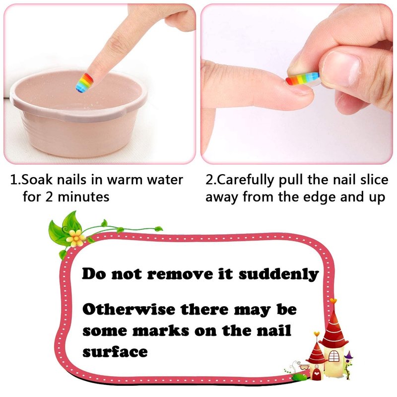 - To remove fake nails, you can make it easier to remove them by first placing your nails in warm water for 2 minutes. Do not remove directly or it may leave some marks on the surface of your nails. If you encounter this situation, you can also clean the residue with water