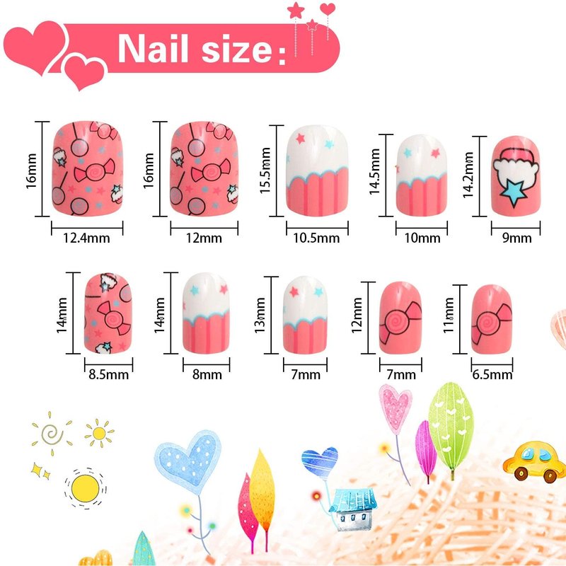 - You will receive four boxes of 96 pieces of children's artificial nails in various sizes and patterns. This is a wonderful gift for your lover, girlfriend, mother or sister, and also a great gift for birthdays and Christmas