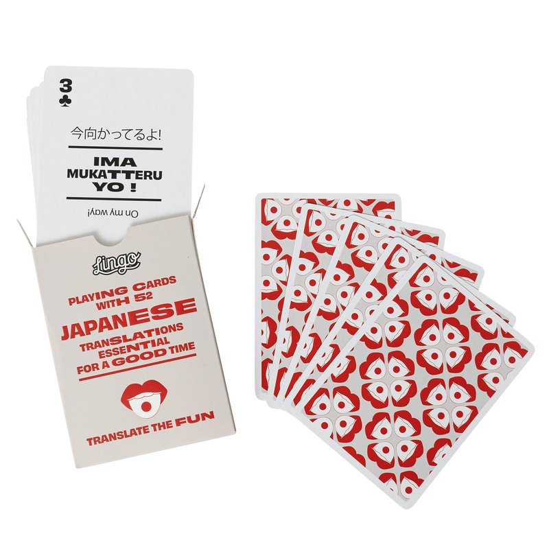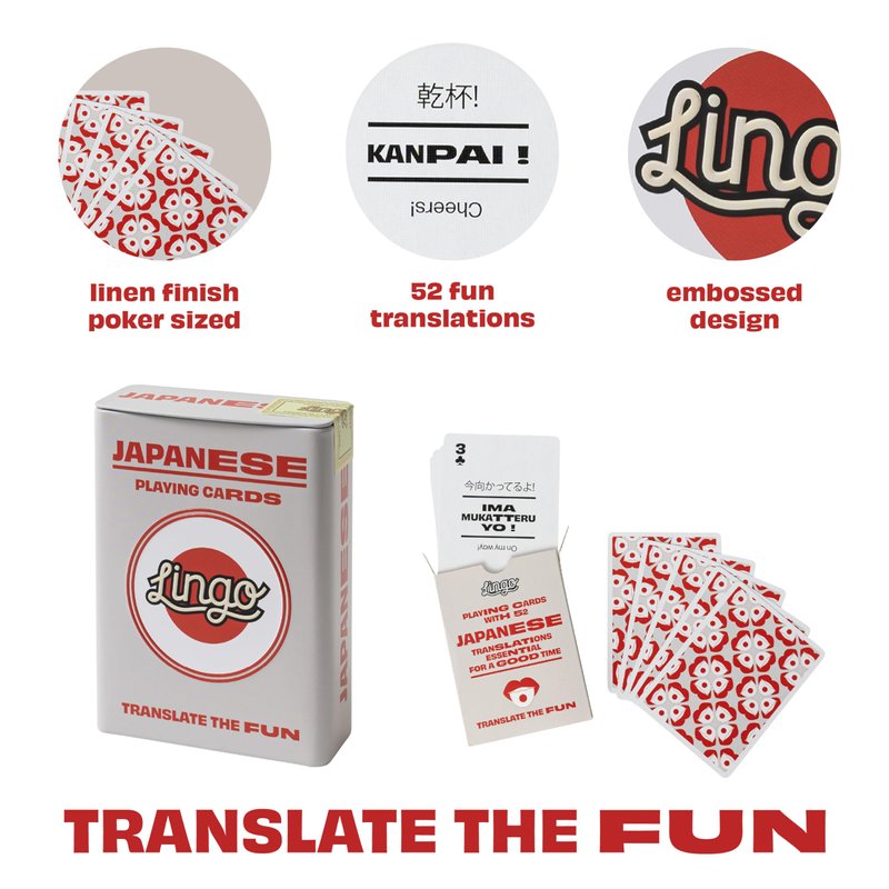 - EXPLORE AND PLAY ENDLESS –Add a touch of class and a dash of bilingual fun to your next game night. You can now learn Japanese phrases & words, and play your favorite card games like Poker, Black Jack, Spoons, Rummy, Go Fish, Memory, Crazy Eights, Hearts and Solitaire. Trust us, with these cards in your hand, you'll be the one everyone's talking about. Order your Lingo Playing Cards today and get ready for the most fun and exciting game night yet!