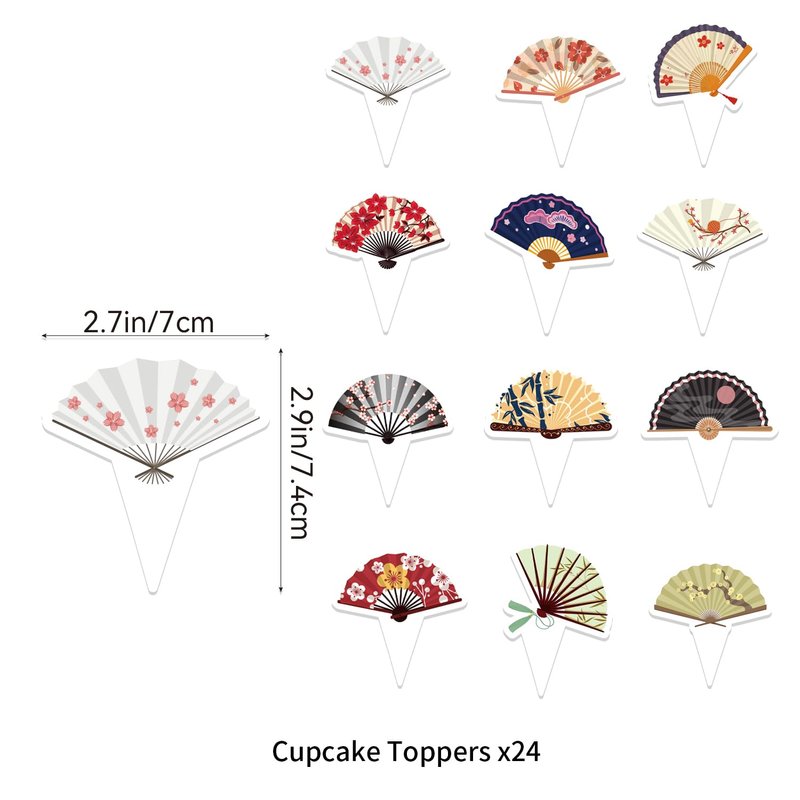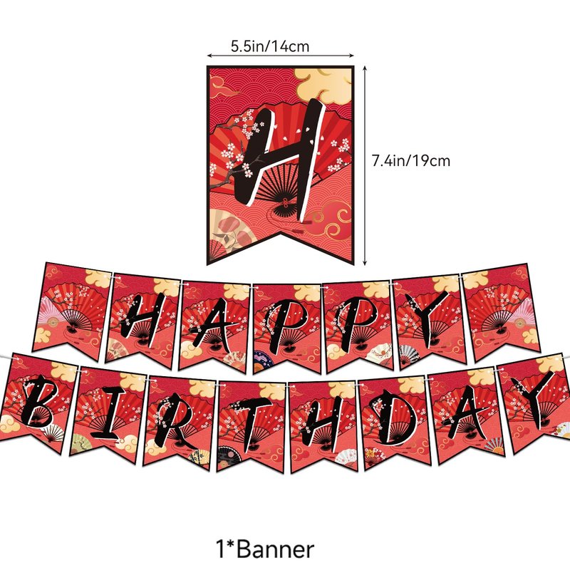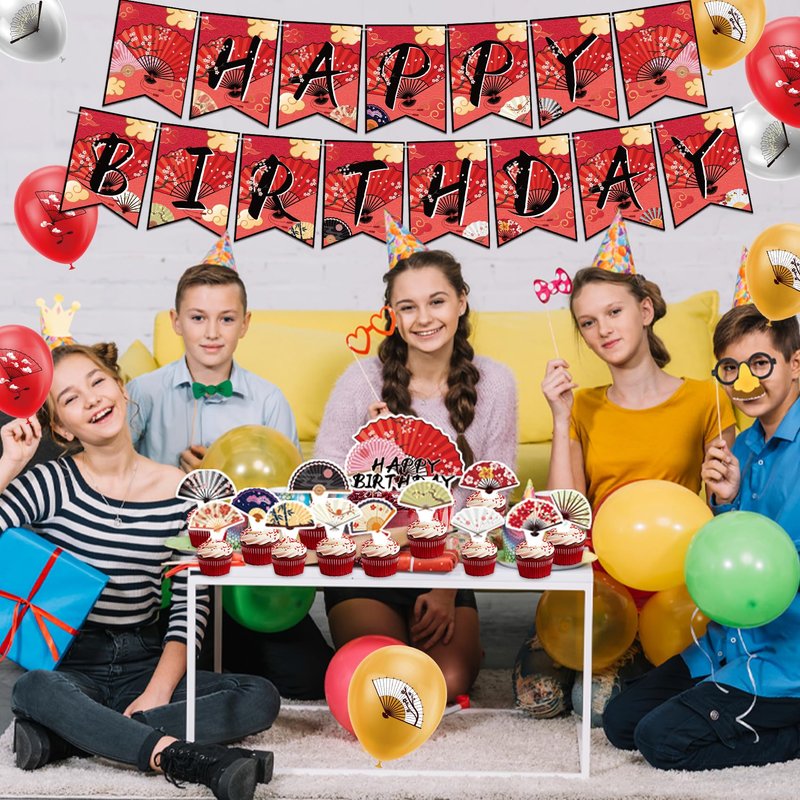 Japanese Party Decorations Folding Fans Party Decorations Folding Fans Birthday Party Supplies Includes Chinese Japanese Folding Fans Birthday Banner, Cake Topper, Cupcake Toppers, Balloons