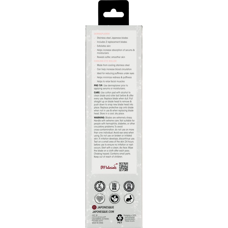 - TWO BEAUTY TOOLS IN ONE - The JAPONESQUE Dermaplaner and Cooling Eye Roller is an all-in-one skin care tool. The dermaplaning tool removes unwanted hair & exfoliates skin, and the cooling eye roller reduces redness and puffiness.