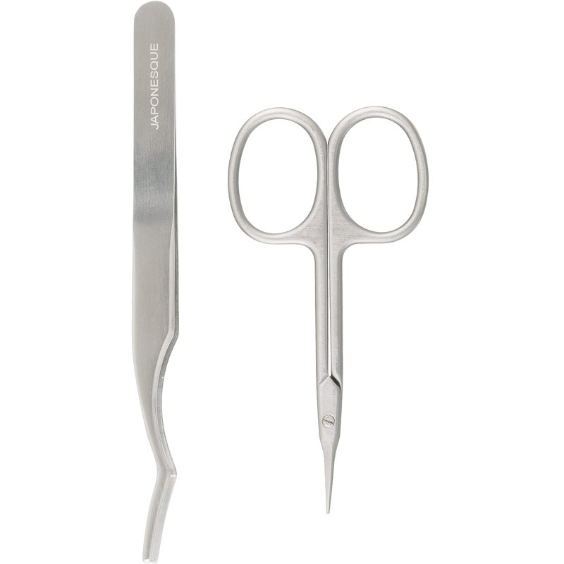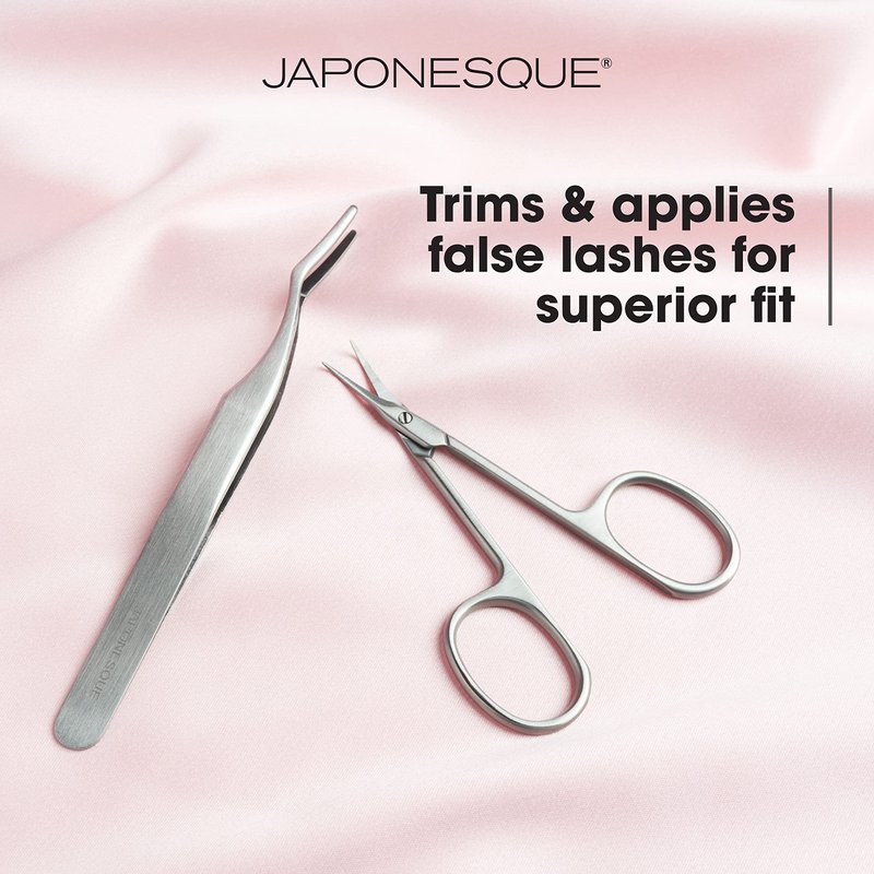 JAPONESQUE False Eyelash Applicator Kit, Stainless Steel Scissors And Tweezer Applicator Duo - Two Piece Kit For Easy, Natural Looking False Eyelashes, Works On Strips and Lash Clusters