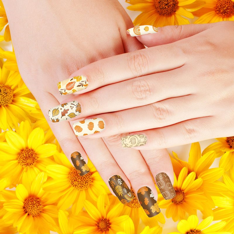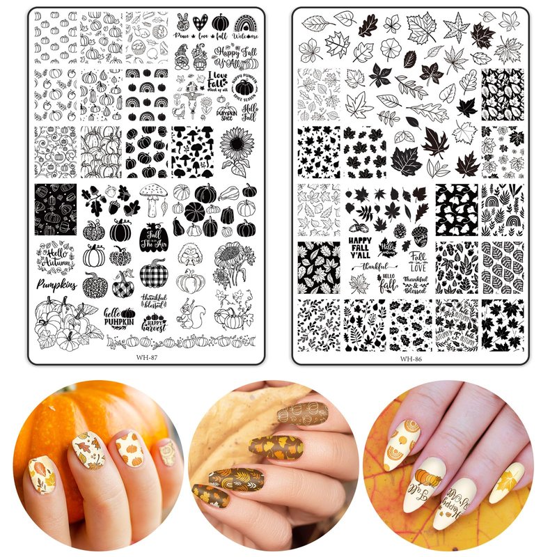 JarThenaAMCS 2 Sheet Fall Thanksgiving Nail Art Stamping Plate Kit Assorted Pumpkins Maple Leaves Autumn Blessing Collection Nail Art Plate for Holiday DIY Print Manicure Salon, 5.7 x 3.7inch