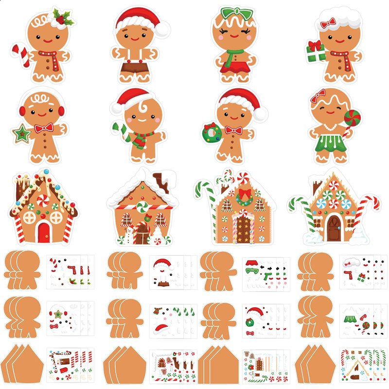 - THE PACKAGE INCLUDES: 36 sets Christmas paper craft kit, including 24 Pcs gingerbread man cards, 12 Pcs gingerbread house cards and 12 sheets stickers, sufficient quantity and multiple styles to meet your various needs