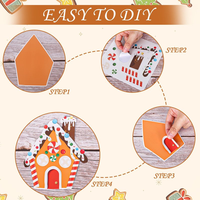 - CHRISTMAS THEME: Our Christmas theme craft kits come with gingerbread man and gingerbread house basic cards, decorated with candy canes and classic elements stickers, funny and delicate, will nicely increase fun and festive atmosphere