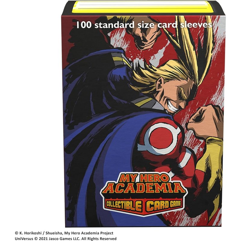 - ALL MIGHT FLEX SLEEVES: Go beyond with these My Hero Academia sleeves! 100 textured matte back card sleeves feature immersive All Might artwork and a clear front so you can take your games to the next level.