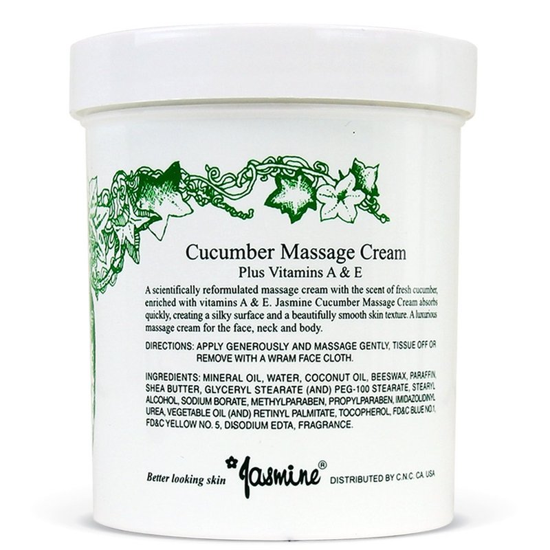 Jasmine Cucumber Massage Cream. Keep Your Face and Body Fresh and Soft with Anti-Aging Therapy Cream. Have Deeply Moisturized and Nutrition on Your Skin. Organic Cucumber Extract. [400 g / 14.1 Oz]