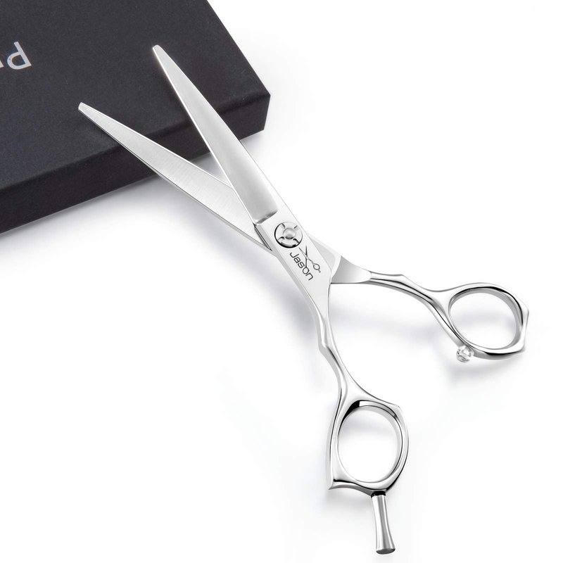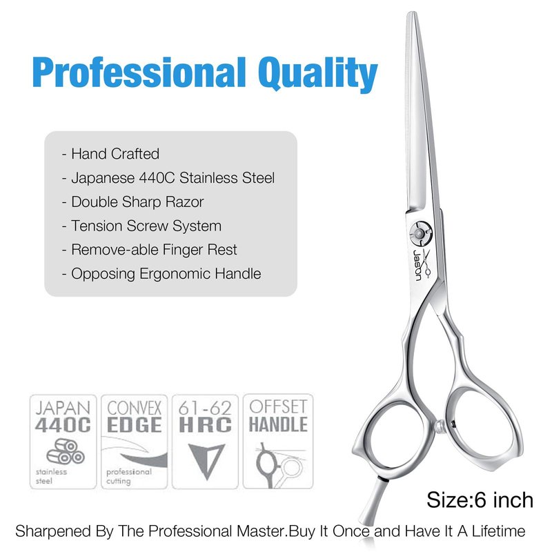 JASON 6 Inch Left Handed Barber Hair Cutting Scissors Professional Salon Shears Razor Edge Hairdressing Scissor Japanese Stainless Steel Reversible Haircut Shear for Men Women