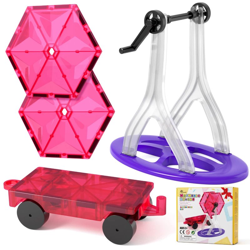Jasonwell Magnetic Car Truck Wheels Magnetic Vehicles Set Ferris Wheel Kit Propeller Windmill Playset for Magnetic Tiles Magnet Toys 3D Building Blocks Accessories for Toddlers Boys Girls