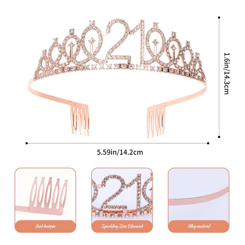 JasperKino 21th Birthday Sash and Tiara Set Rose Gold Birthday Sash Crown Birthday Party Favors Supplies for Girls Birthday Party