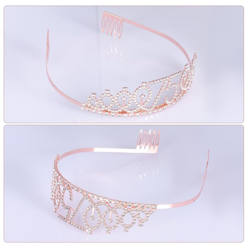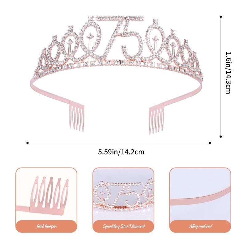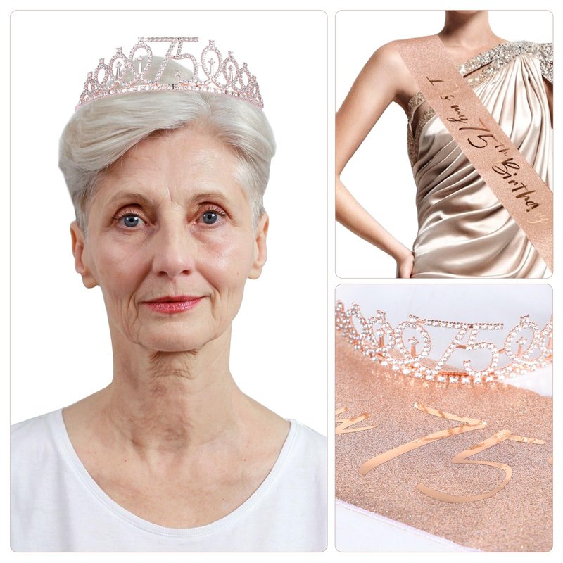 JasperKino 75th Birthday Sash and Tiara Set Rose Gold Birthday Sash Crown Birthday Party Favors Supplies for Girls Birthday Party