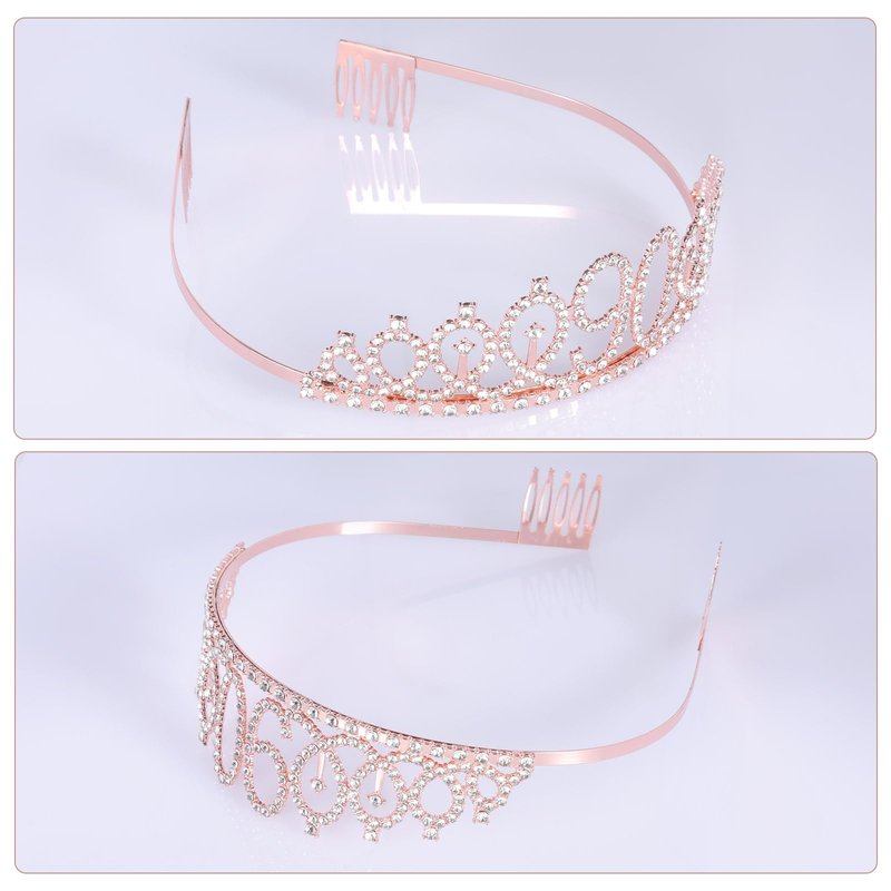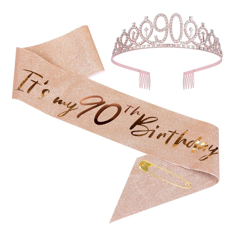JasperKino 90th Birthday Sash and Tiara Set Rose Gold Birthday Sash Crown Birthday Party Favors Supplies for Girls Birthday Party