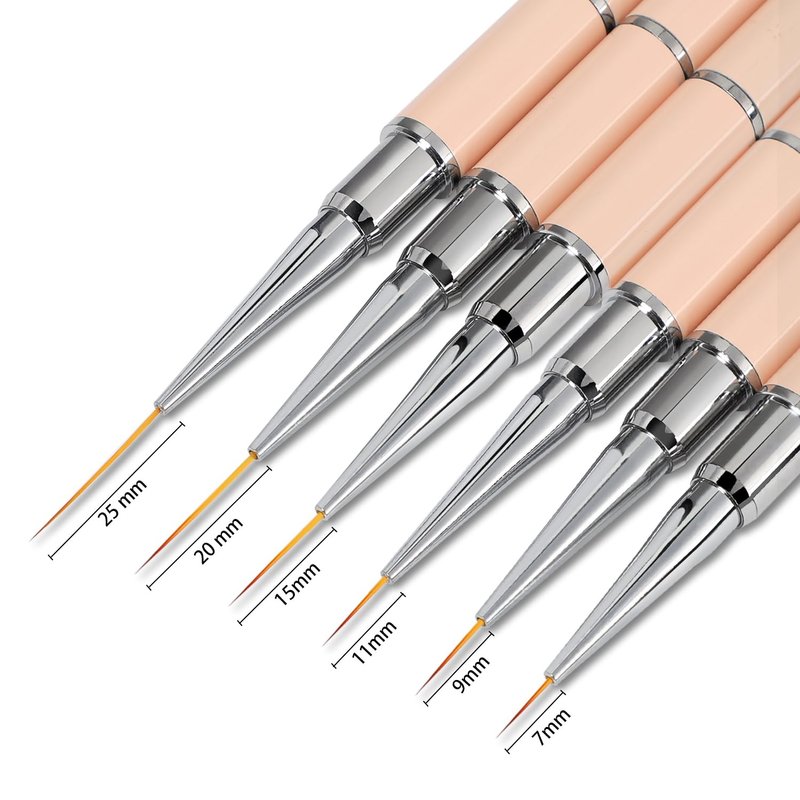 - SET : 3PCS Thin Nail Art Design Brush There are 5 different sizes, respectively 7 /9 /11 /15 /20/25mm, Perfect for drawing different patterns.