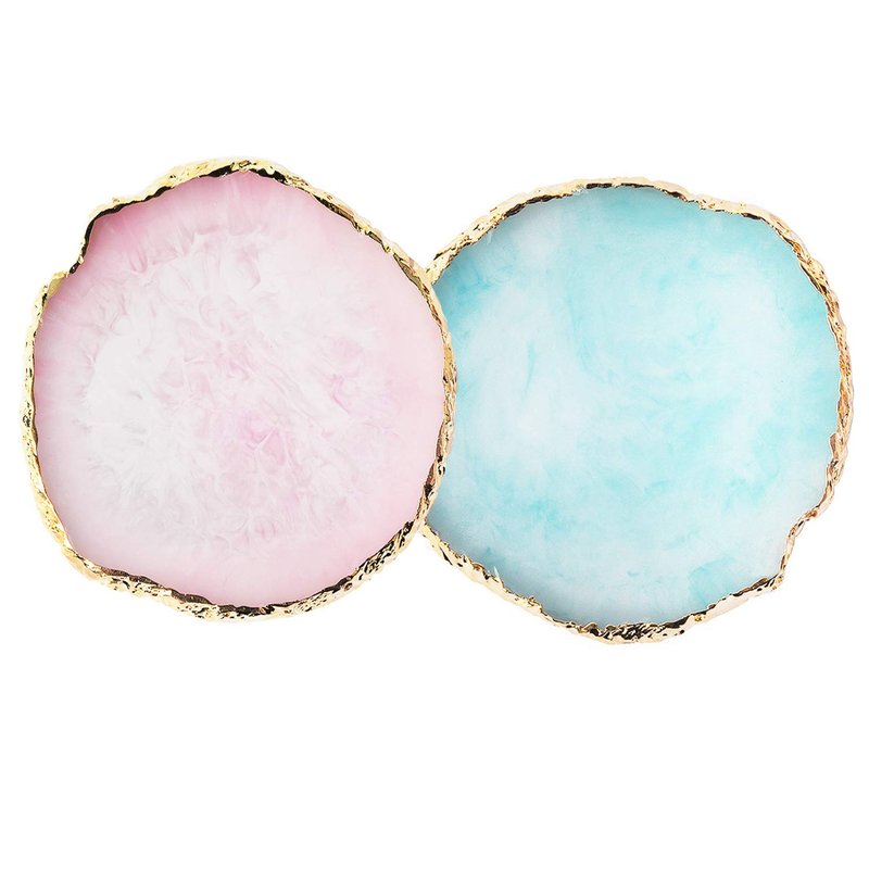 JASSINS Resin Nail Art Palette,Nail Art Painting Mixed Color Palette Gold Edge Nail Gel Color Makeup Display Board(Purple) (Pink+Blue)
