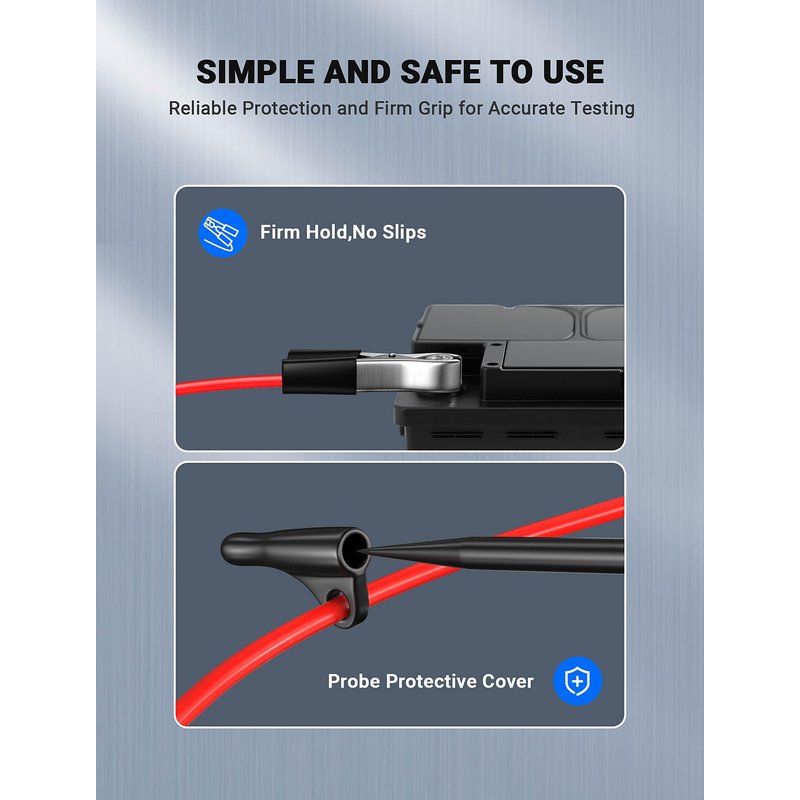 - EXTRA LONG REACH FOR EASY OPERATION: 96 inches of high-quality, flexible spring wire design allows for more flexible stretching and a wider range of reach for testing. Equipped with heavy-duty alligator clips for a secure grip, one-handed operation is facilitated. This makes it easy to reach tight spots or hard-to-reach areas