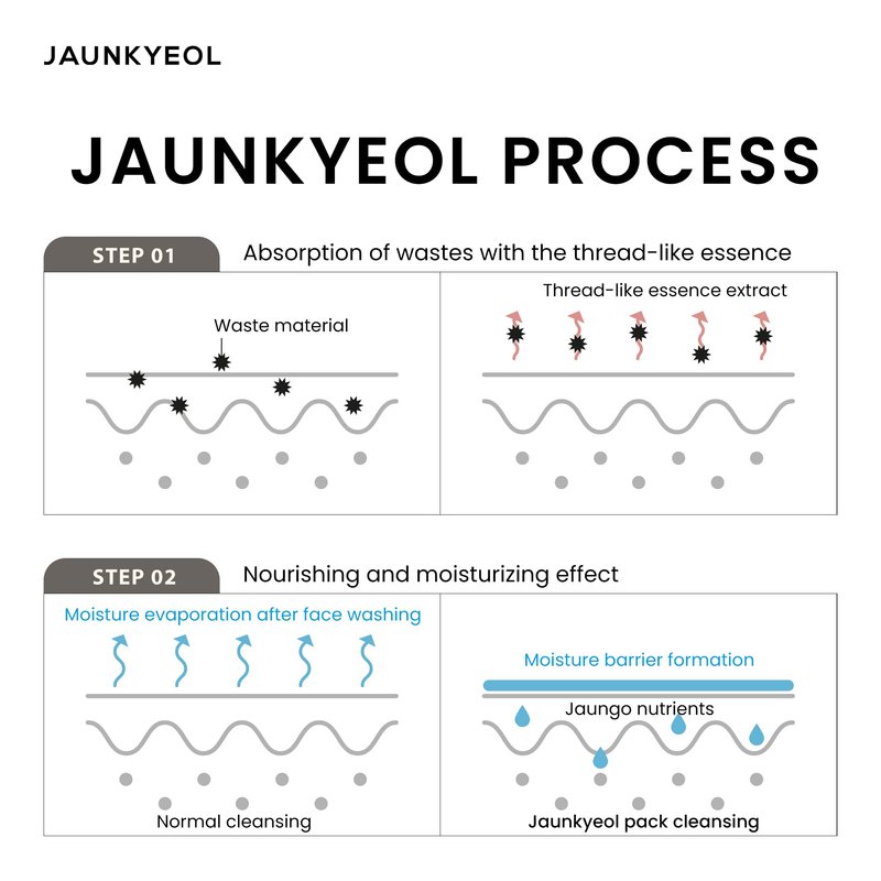 Deep cleaning of skin & pores with high adsorption power of thread skein type essence extract.