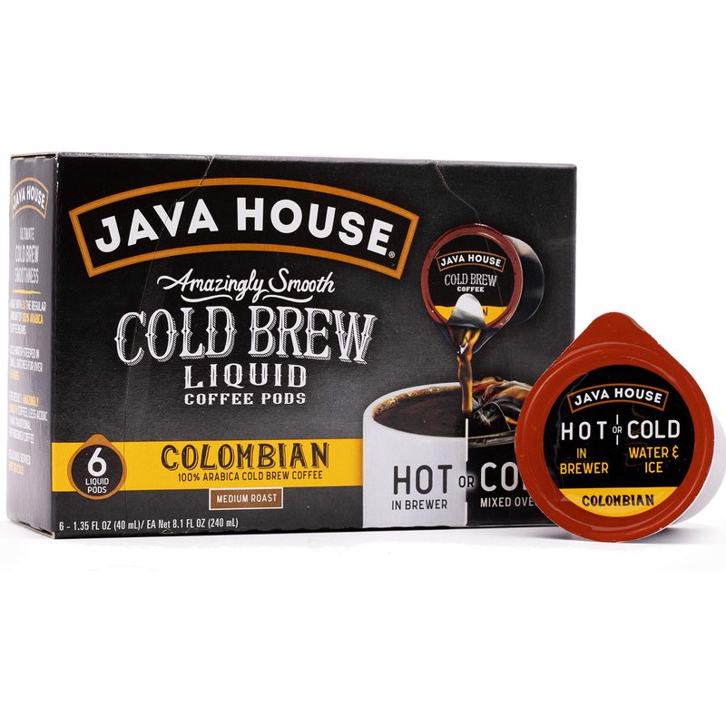 JAVA HOUSE Cold Brew Coffee, Colombian Medium Roast Coffee Concentrate Liquid Pods - 1.35 Fluid Ounces (6 Count) Enjoy Hot Or Iced…