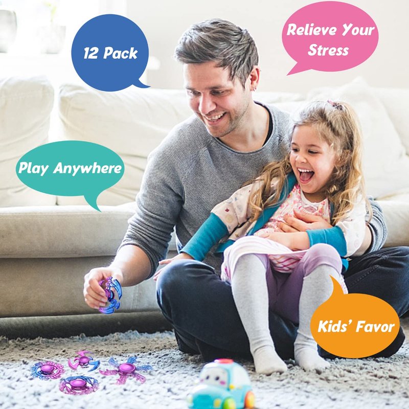 - 【DIVERSE SELECTION】Unbox a collection of 12 fidget spinners, each boasting a distinct and eye-catching design. From sleek and modern to playful and colorful, this assortment ensures there's something for everyone. Perfect for capturing attention and sparking curiosity, these spinners offer a delightful way to unwind and destress. Get ready to impress friends and enjoy endless moments of relaxation on the go!