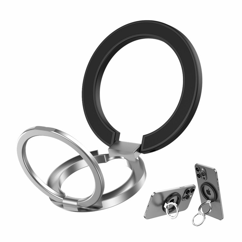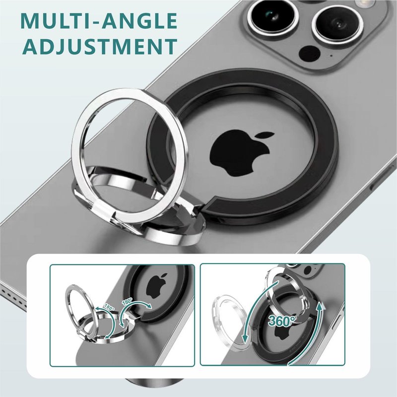 - PORTABLE MAGSAFE PHONE GRIP: With this Magnetic phone ring holder, you don't need to carry an extra phone stand; this portable and compact ring holder can be attached to your phone for easy carrying. When fully opened, the ring holder has a large angle and an extra-long support arm, allowing you to place your phone upright on a table or the ground, making it useful for office work, watching short videos, taking selfies, and creating videos whenever needed.
