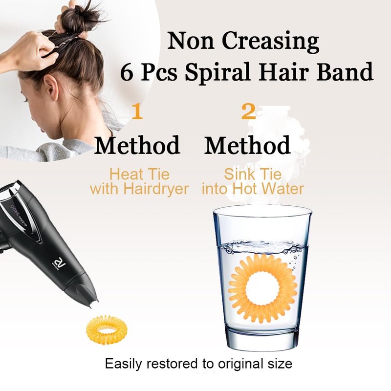 - 【No Crease Spiral Hair Ties 】This hair elastics for women made of waterproof skin-friendly TPU, which is soft, durable and flexible. The spiral hair tie fixed the hair firmly also not hurt for your hair.Doesn't leave a crease in your hair, preventing it from being pulled during removal and adjustments, keeping your hair healthier.