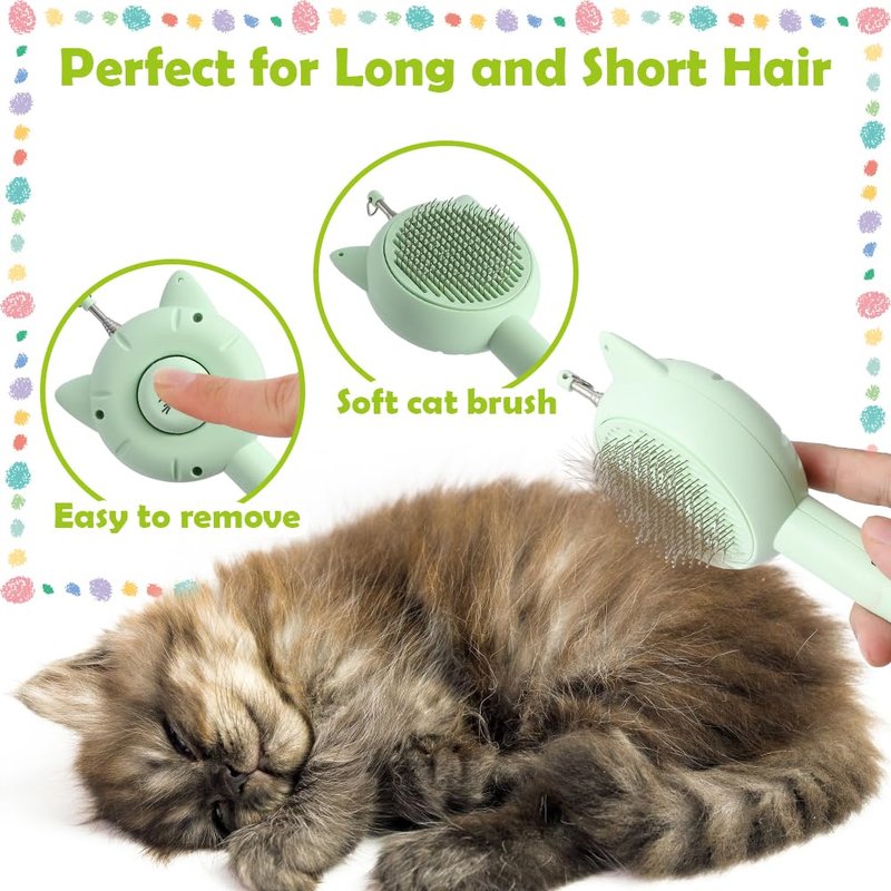 - 😻【Massage Brush for Pets】This cat hair cleaning brush has a rounded rubber tip at the end to effectively remove pet hair while protecting the skin. It can also provide a gentle massage for your furry friend. Simply press the clean button after brushing your pet to easily remove hair from the brush, making it a time-saver for everyday use.