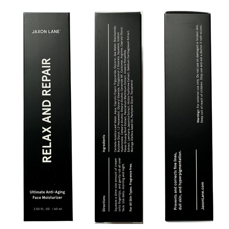 Korea is the world leader in advanced skin care science. But great Korean products are hard to come by & hard to understand for the western consumer. We realized the need to bring the world’s best skincare products here while making them fun & approachable for the modern man. So, we created Jaxon Lane. The secrets of K Beauty formulated just for you! Advanced Anti-Aging Technology –From the cutting edge science of Korean Beauty Products comes our Fragrance Free Lotion for Men –All Jaxon lane products are designed with your unique needs in mind. Welcome to Luxury Beauty & Skin Care for Men! Skin Quenching Moisture – Harness the multifaceted power of a face lotion for men, eye wrinkle cream, neck cream and night cream for face for the more youthful complexion you've been looking for –hydrated skin is healthier skin. Non Comedogenic – Relax and Repair Men's Lotion for face goes on smoothly & is fast absorbing so it won't clog pores. Gentle brightening & exfoliating properties assist in smoothing blemishes, eyebags and dark circles for Noticeable Results – Say “Hello” to firm skin. Our Skin Moisturizer is essential in best choice products for mens grooming & self care. Turn back the clock and improve skin's tone and texture with Relax and Repair. About the Product: Reduce Hyperpigmentation, Correct Fine Lines and Wrinkles, Revitalize Dull Skin, Deep Hydration for Soft and Supple Skin, Support Collagen Production, Soothe Irritation, Skin Firming Anti-oxident Protection. Suitable for all skin types, if you're into anti aging creams that really work, Relax and Repair is the perfect mens moisturizer for you. Plus check out the complete line of Bro inspired face products from Jaxon Lane. Great as gifts for men who have everything and can be used with all of your favorite skin care tools. Add it