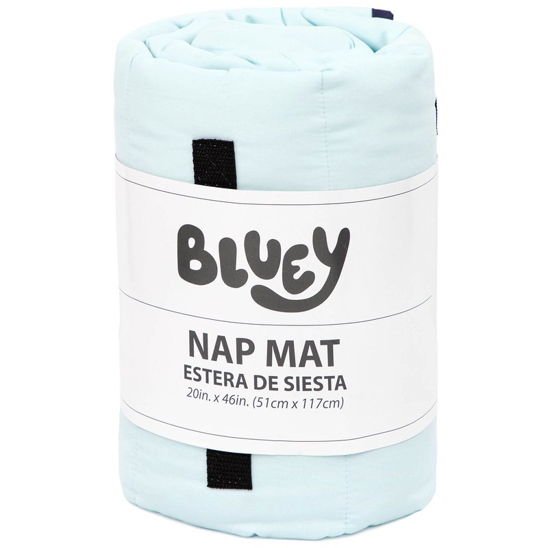 - SUPER SOFT & TRAVEL-FRIENDLY – Bluey nap mat measures 20 x 46 inches, built in blanket measures 34 x 35 inches, and pillow measures 9.5 x 20 inches. Nap mat rolls up effortlessly for easy travel. Carrying handle and Velcro enclosure allow you to get out the door quickly. Claim your nap mat with the customizable name plaque. Bedding features Bluey and Bingo. For indoor use only, Ages 3-7.