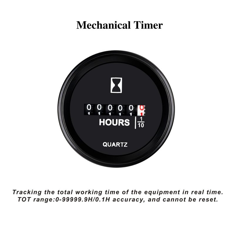 - Mechanical Timing----Mechanical instrumentation inside to roll the gears around;Tracking the total working time of the equipment in real time,accumulated data,Max hours:99999.9H, 0.1H accuracy, and TOT cannot be reset.