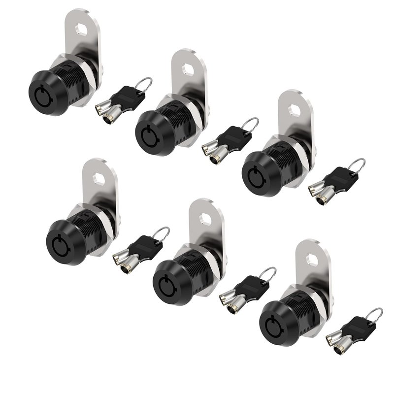 - What You Get: 6 x 5/8 inch Cabinet Locks, 12 x Keyed Alike. All cabinet replacement locks allow operation by one key, which is non-keyed and can be removed in the locked and unlocked position.