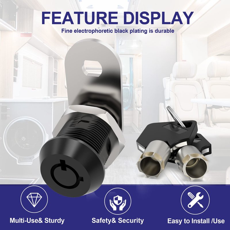 - Sturdy Construction: RV Storage Locks are constructed of die-cast steel parts with a electrophoretic black process polishing finish; It providing better rust resistance for file cabinet lock replacement locks as well as sturdiness and durability for long-term use.