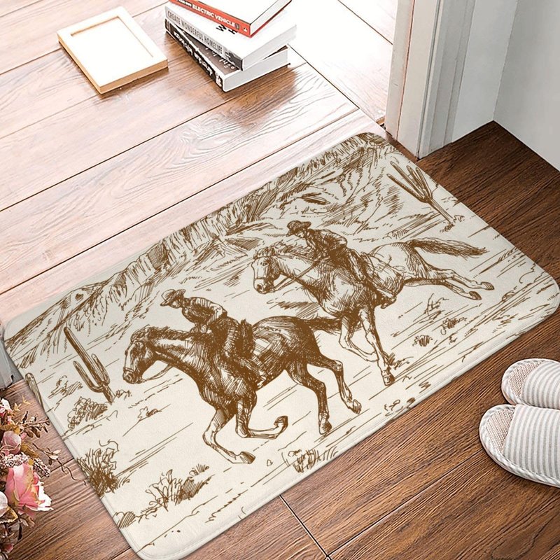 Jbofyee American Wild Western Desert Cowboy Bath Mat Non-Slip Soft Microfiber Bathroom Rugs Washable Bathmat, Carpet Rug Entryway Decor for Tub Shower Room Floor, 24x16 Mat