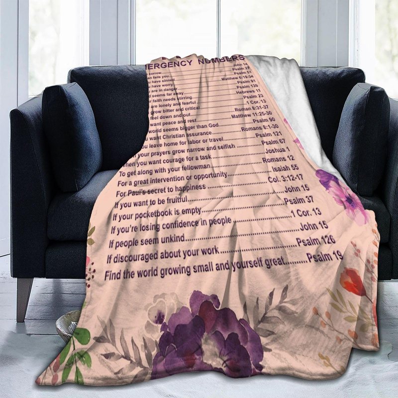 Jbofyee Bible Emergency Numbers Verse Quote Throw Blankets All Season Ultra Soft Warm Fleece Blanket for Home Bed Sofa Couch Chair Outdoor Travel Camping 40x30 Inch