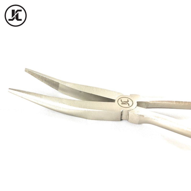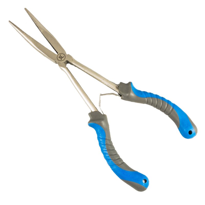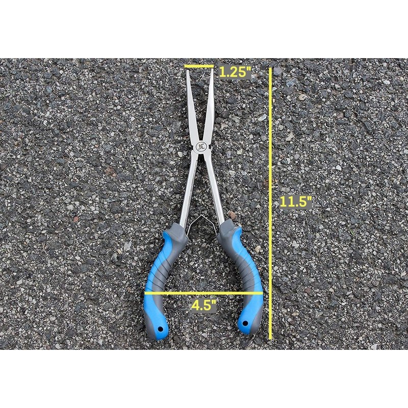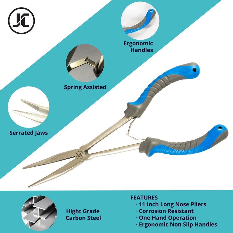 JC Long Nose Pliers Fishing Hook Remover 11 inches Stainless Steel Freshwater Saltwater Bent Fishing Pliers with Ergonomic, Spring-Assisted Handle