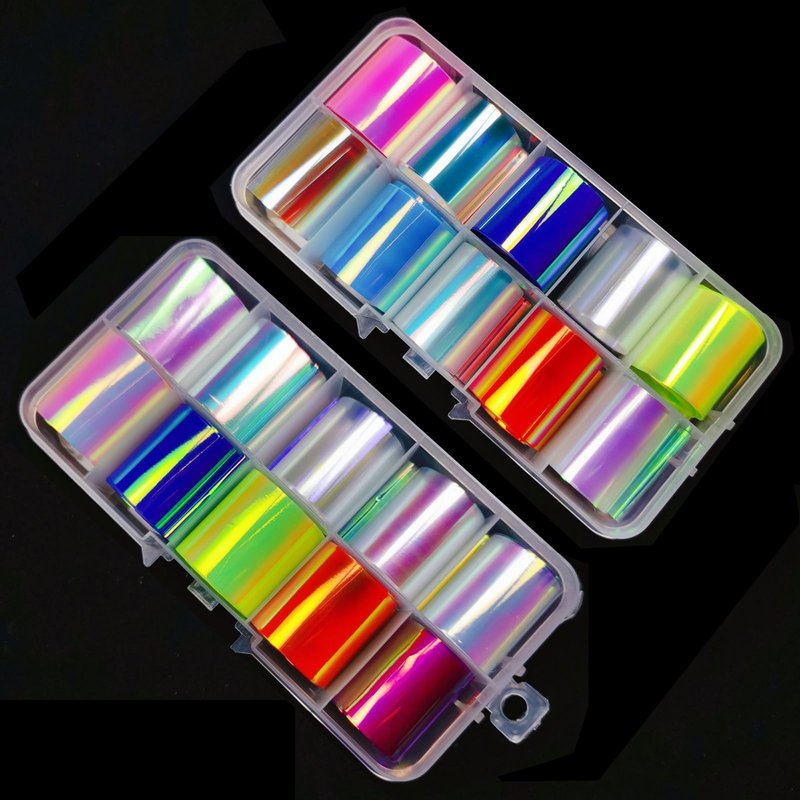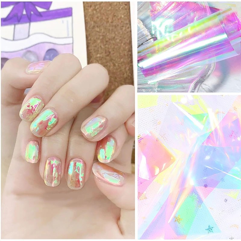 - Shiny Glass Nail Art: These neon stickers have the effect of aurora reflecting light, under the light, different colors appear at different angles, the design appearance of broken glass can be simulated on the nails.