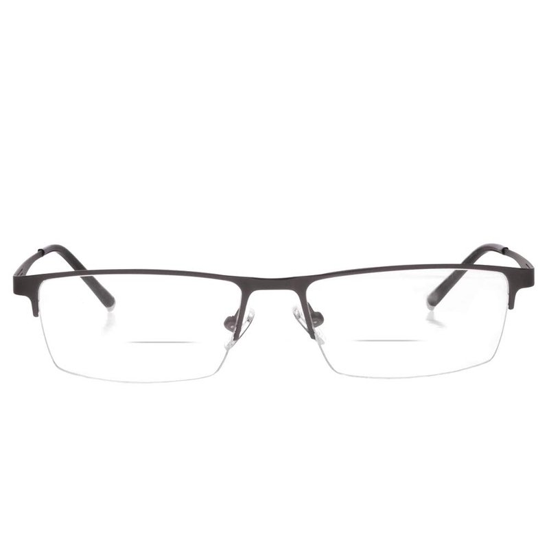 Jcerki Gray Half Frame Business Bifocals Reading Glasses 1.50 Men Women Fashion Light Bifocals Reading Eyeglasses