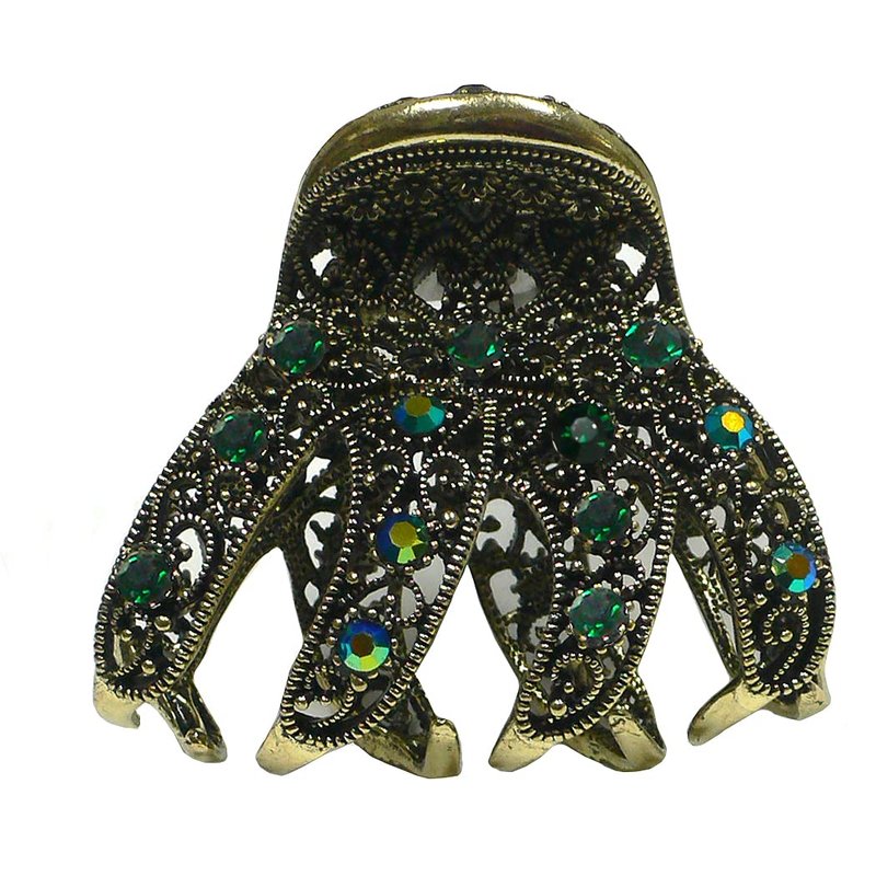 JCGY Claw Clip Metal Hair Claw Antique Gold Trim Sparkly Emerald Color Crystals YY86410emerald